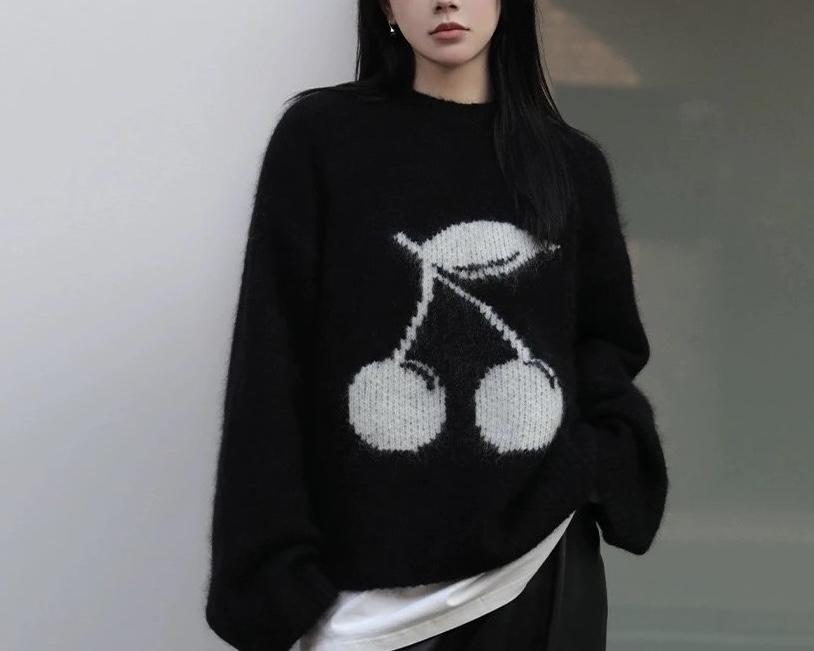 毛晓彤孙怡同款‼IMMI提花樱桃毛衣,马海毛羊毛混纺面料,原厂纱线厚实蓬松,贴肤穿也不扎。