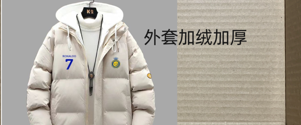 利雅得胜利队7号C罗运动棉服男女冬季加棉厚款足球连帽外套棉袄子