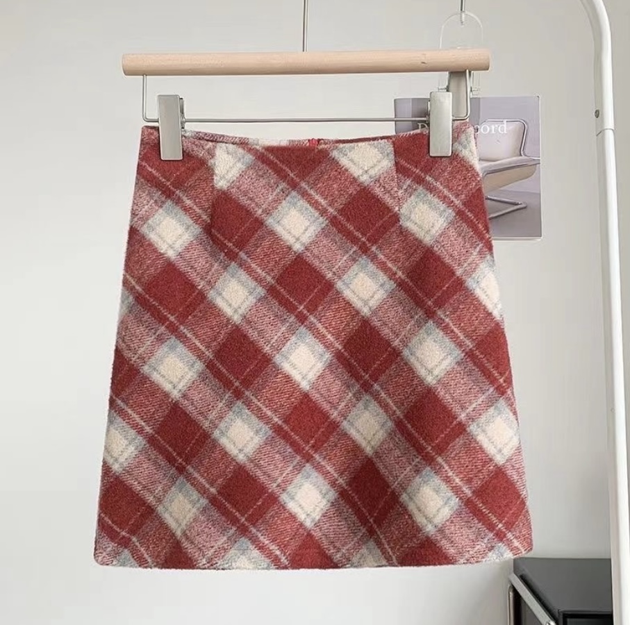 格子半身裙女2023新款秋冬高腰显瘦A字包臀裙遮跨防走光辣妹短裙