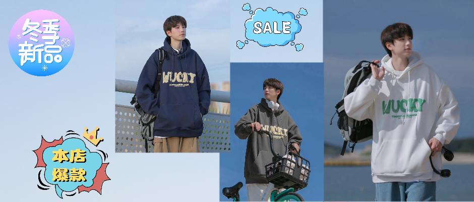 E2023秋冬加绒男士卫衣圆领刺绣宽松百搭套头衫ins情侣款外套上衣