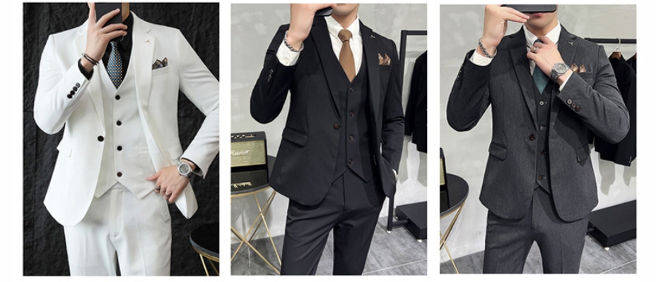 纯色西服套装男士韩版修身西装男商务职业正装新郎结婚礼服三件套