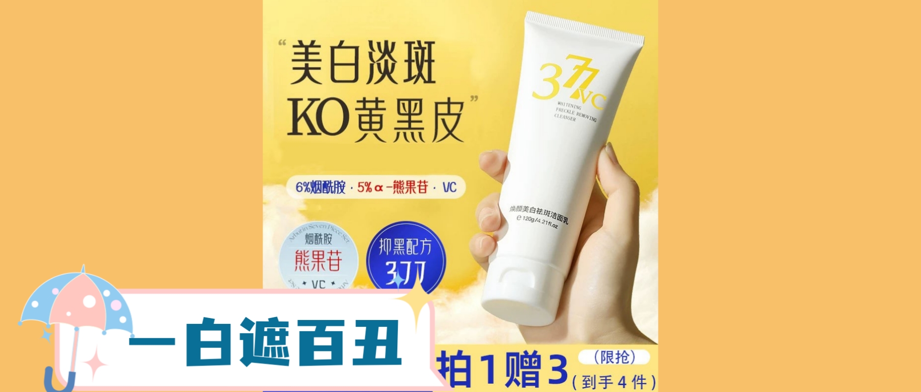 美白洗面奶377烟酰胺VC洁面乳深层清洁去黄黑头祛斑痘熊果苷控油
