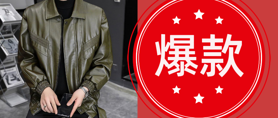 男士潮牌皮衣秋冬新款 韩版 军绿色 L