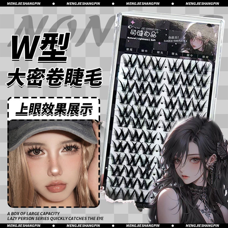W型大密卷睫~欧美懒人D翘度单簇睫毛假睫毛自然浓密卷翘日常新手