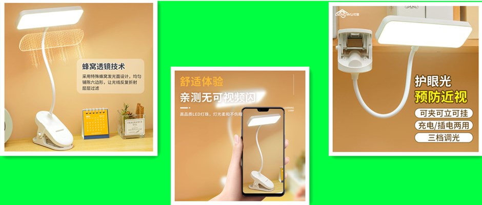 灯屋台灯夹子LED护眼学习灯充电插电大学生宿舍小台灯卧室床头灯
