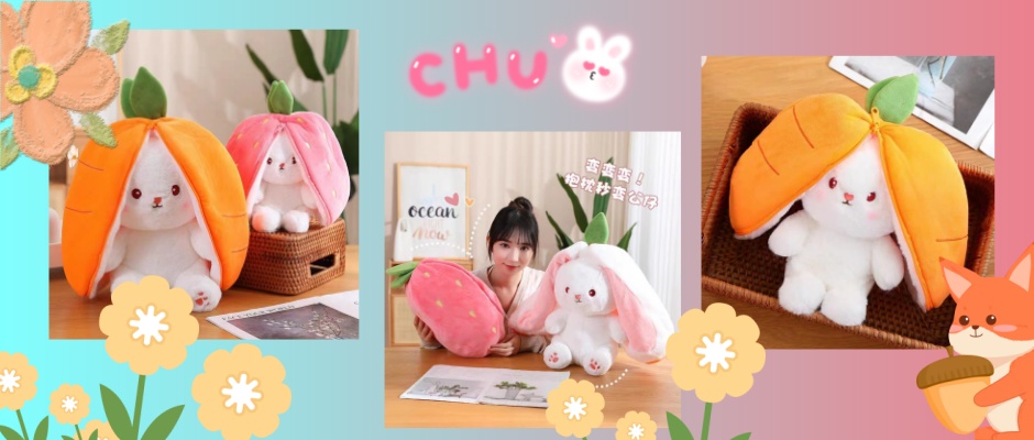 可爱草莓兔毛绒玩具变身小兔子玩偶胡萝卜兔公仔生日礼物睡觉女孩