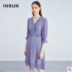 影儿恩裳2020年夏季新款时尚v领复古茶歇裙垂感收腰格子连衣裙