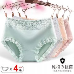 南极人内裤女蕾丝冰丝款无痕超薄丝滑透气短裤夏季中腰抗菌纯棉裆