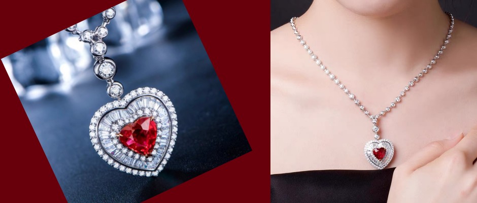 缘彩珠宝4克拉鸽血红宝石项链18k金6.5ct钻石满钻海洋之心链坠