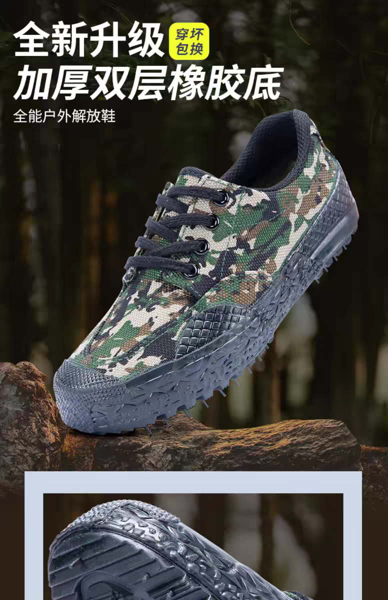 解放鞋男款夏季军训鞋工地耐磨防臭帆布黄胶鞋防刺穿劳保鞋迷彩鞋