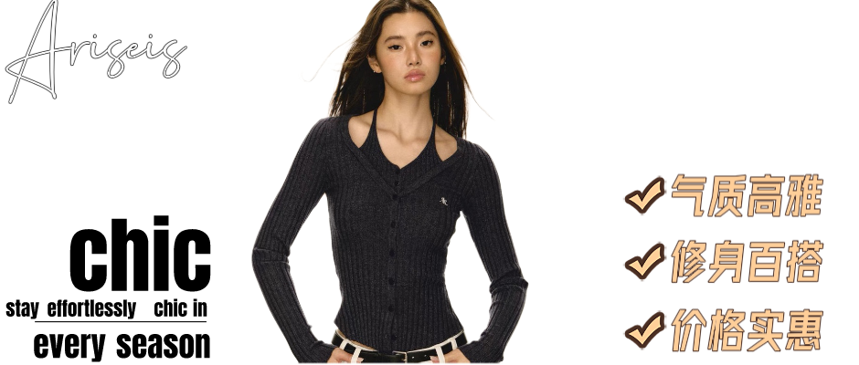 Ariseism 美式复古式假两件长袖针织开衫女2024春季新款毛衣外套 修身 黑色 XS