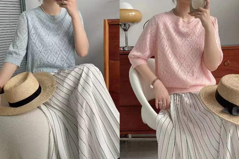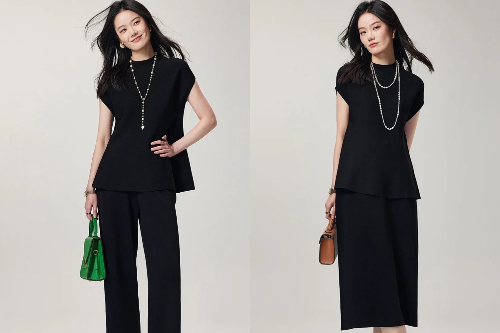 意大利米兰高级女装CANTO MOTTO雾道夏款 “黑松露”冰感曲珠纱针织王牌套装,上衣/阔腿裤/半裙