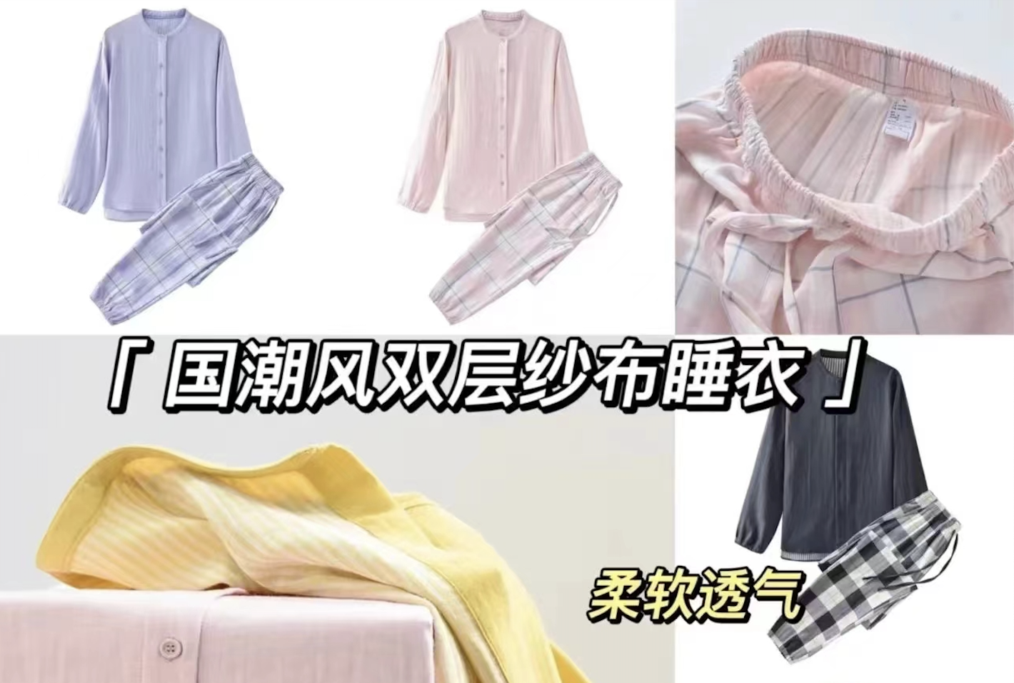 春夏新系列【无印同款双层纱情侣家居套装】~睡衣界天花板~~比裸睡还舒适~穿过的都念念不忘 环保活性印染,耐磨耐洗 100%纯棉面料~越穿越软