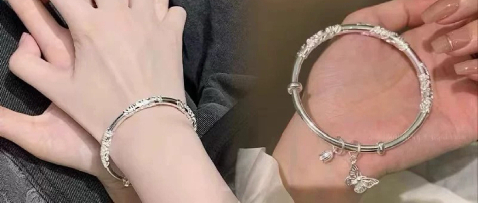 周大福繁花似锦s999银手镯女纯银实心足银镯子情人节礼物送朋友