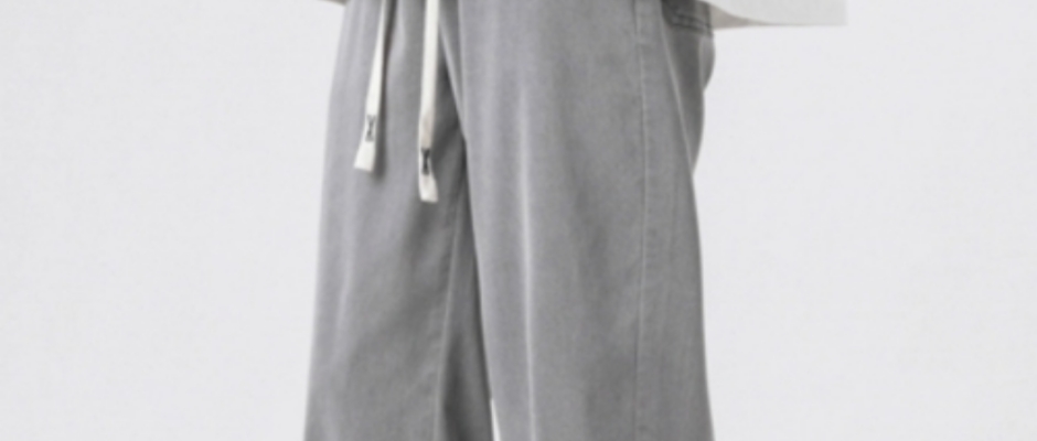 复古牛仔裤男款夏季美式百搭阔腿休闲长裤松紧腰抽绳宽松直筒裤子