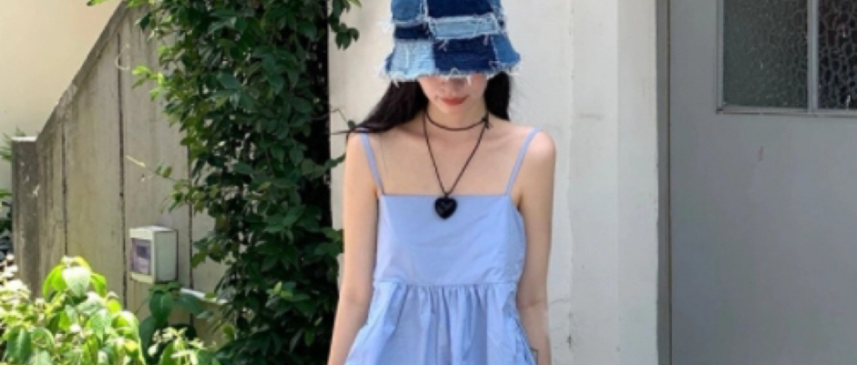 蓝色褶皱吊带上衣2024夏季新款百搭减龄显瘦小背心