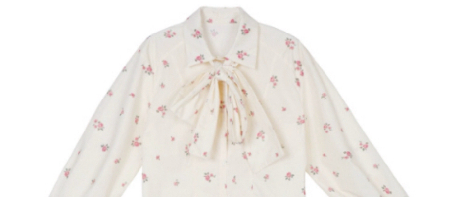 温柔风气质甜美蝴蝶结小碎花衬衫2024早春长袖百搭衬衣女
