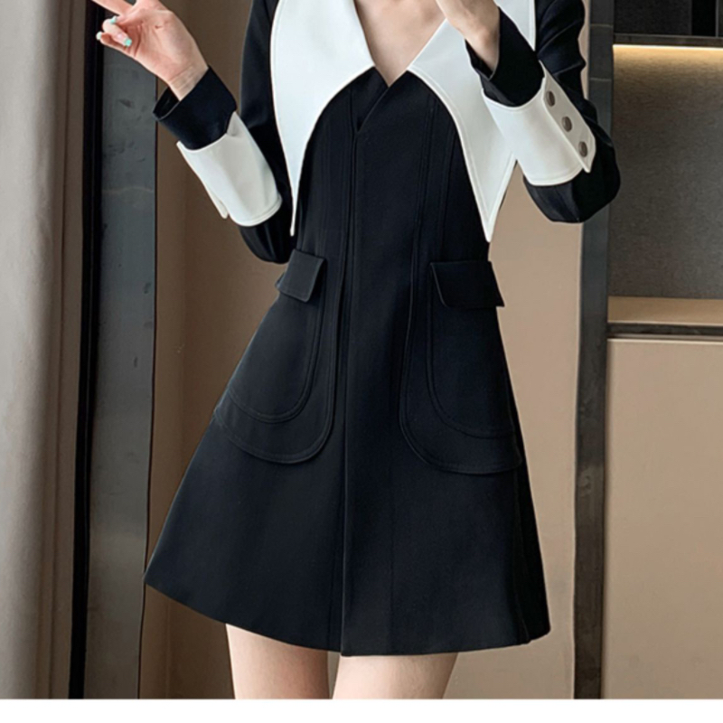 小香风裙子高端气质娃娃领长袖连衣裙早秋冬女小个子