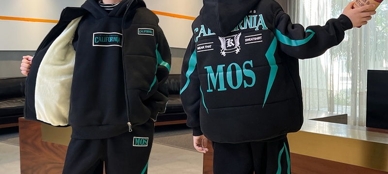 真维斯男童加绒卫衣套装2024新款冬装加厚儿童冬季男孩运动两件套