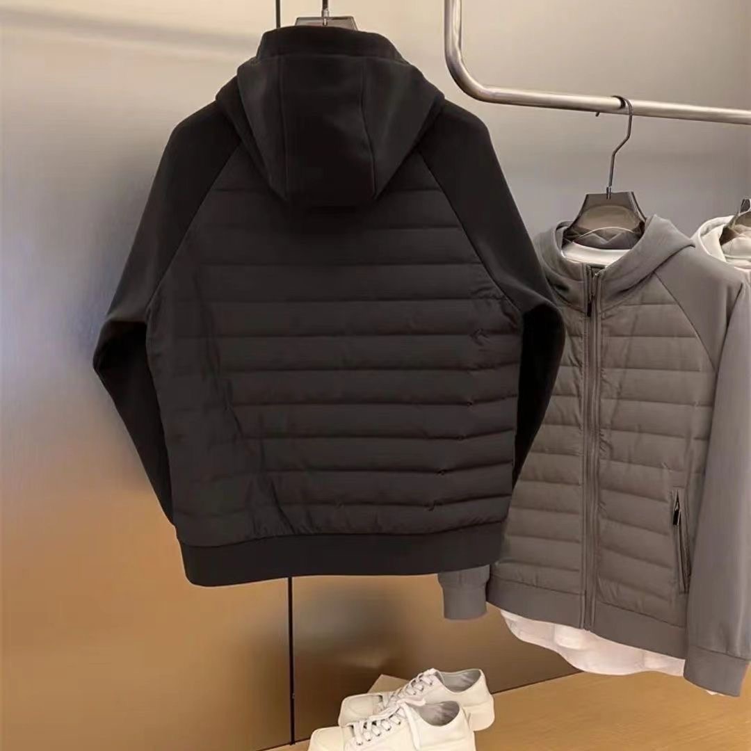 2024年新款外套男女冬季简约棉服休闲开衫拼接连帽情侣纯色外套