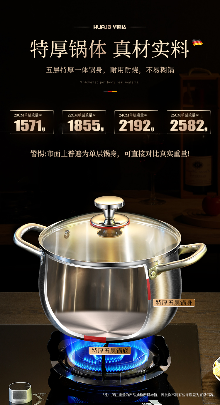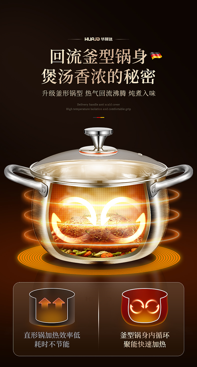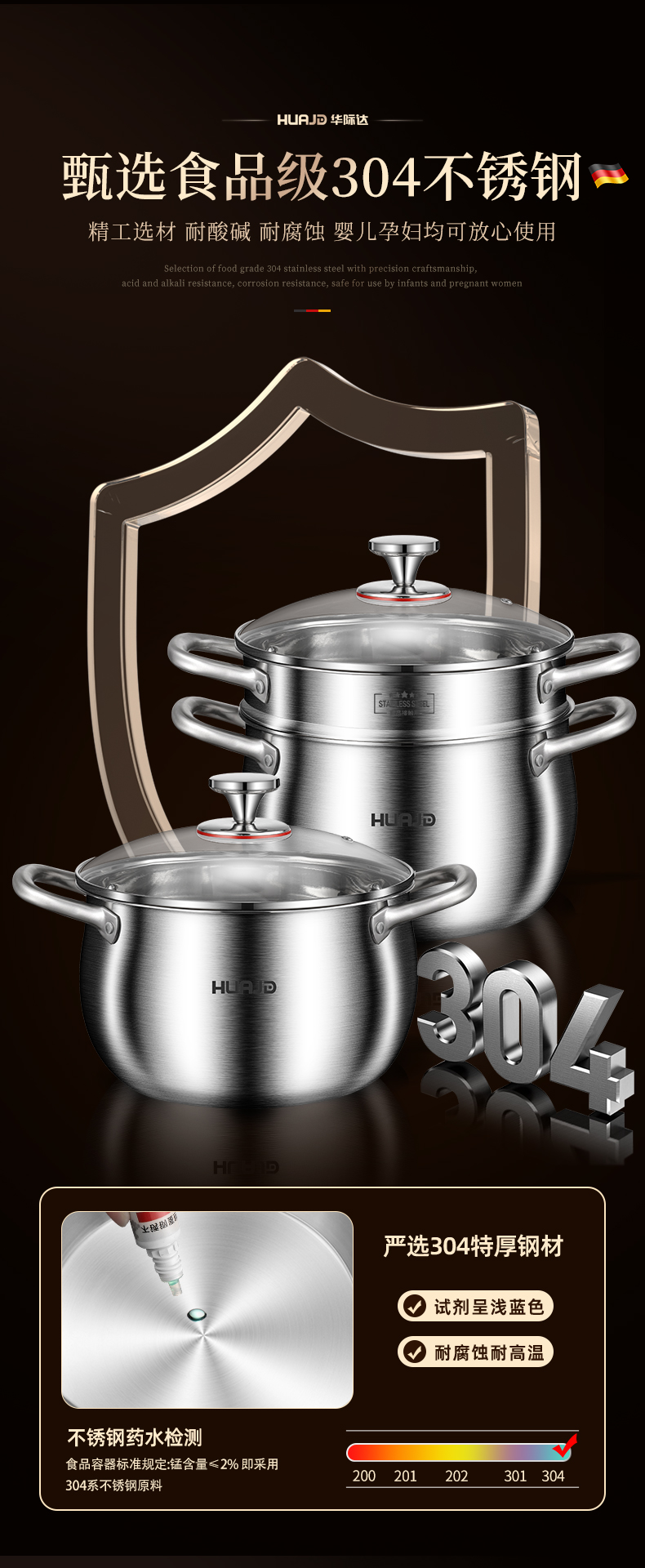 华际达汤锅304不锈钢加厚家用蒸锅煮粥锅煮锅蒸煮双耳电磁炉炖锅