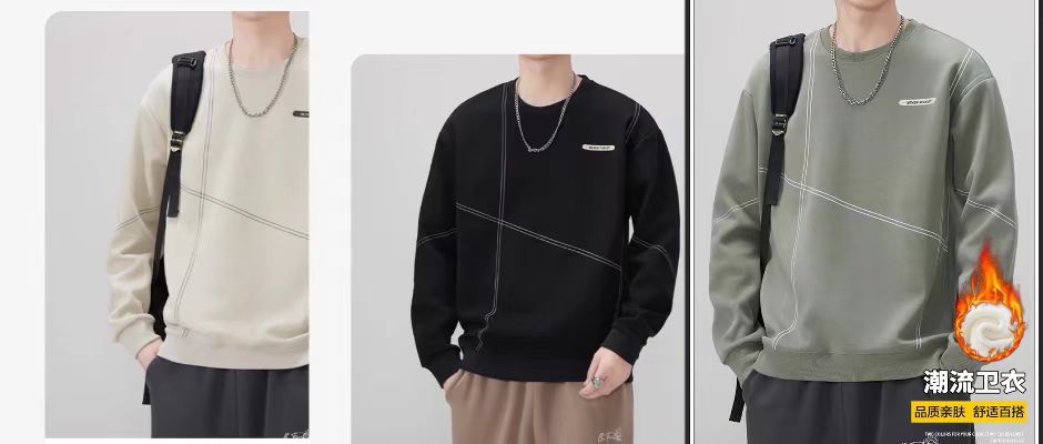 男士2024秋冬季新款加绒加厚套头圆领长袖衣服男休闲运动套装