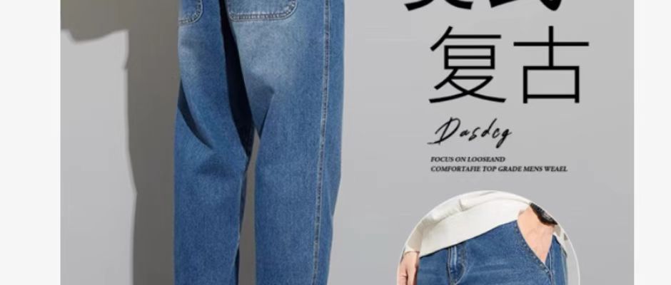 2024秋冬季新款美式牛仔长裤子男士宽松直筒