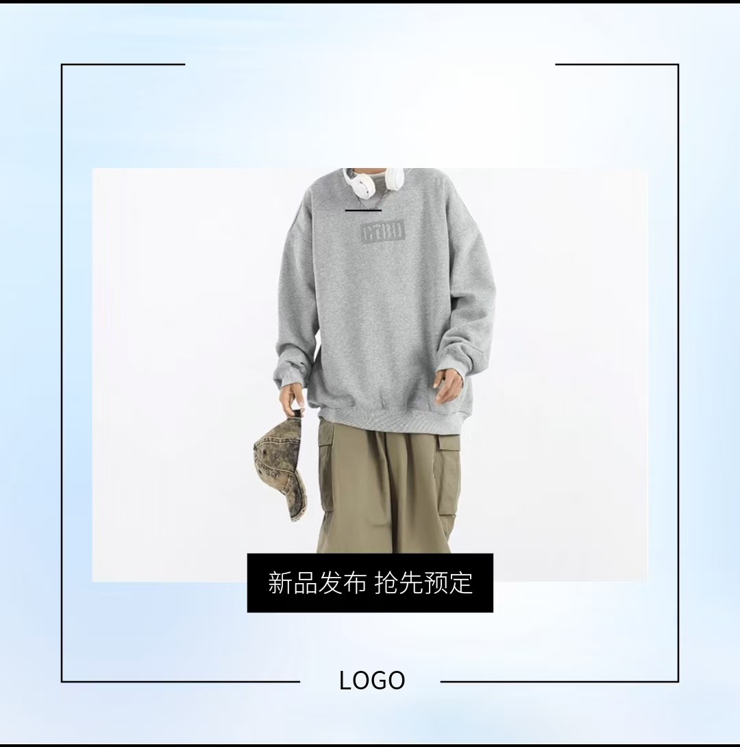 圆领卫衣男秋冬款潮牌休闲宽松无帽长袖T恤潮流上衣加绒加厚外套
