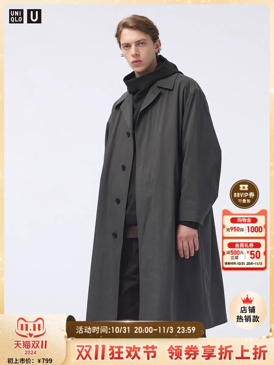 优衣库合作款/男装宽松单排扣风衣/休闲外套大衣24秋冬新款471713