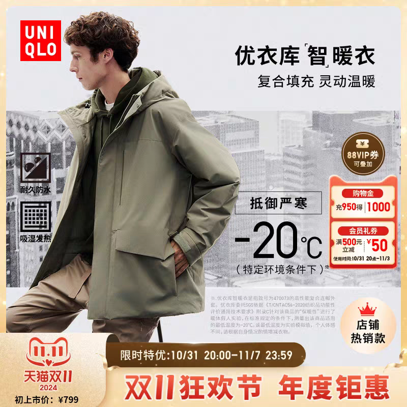 优衣库男装女装高性能复合连帽外套/保暖夹克含羽绒470073