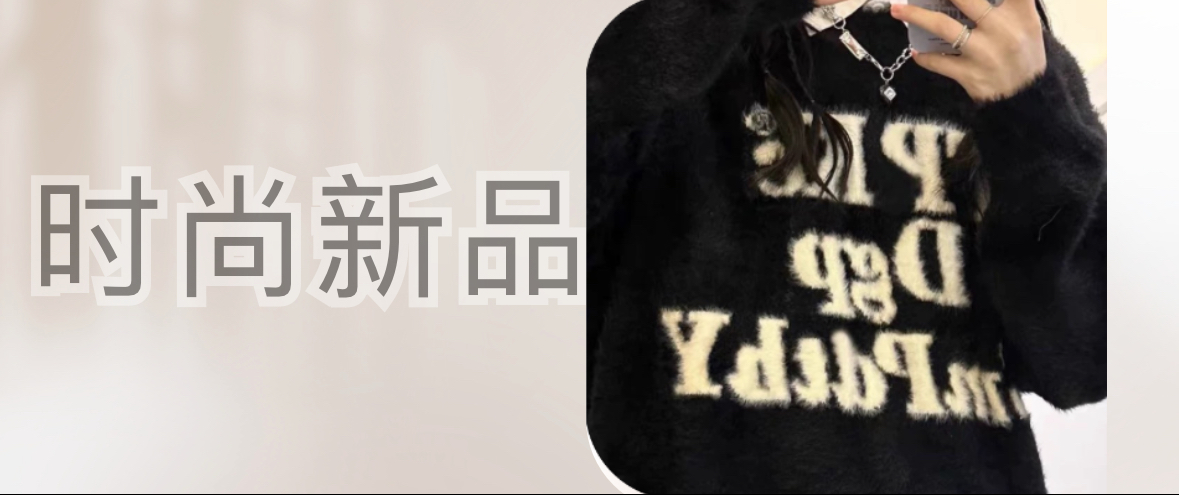 国潮美式字母印花水貂绒毛衣女秋冬加厚高街软糯针织衫高级感上衣