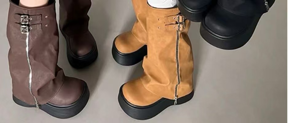 花小姐甜酷风辣妹大头裤管靴2024秋冬新款厚底增高靴子女长筒靴潮
