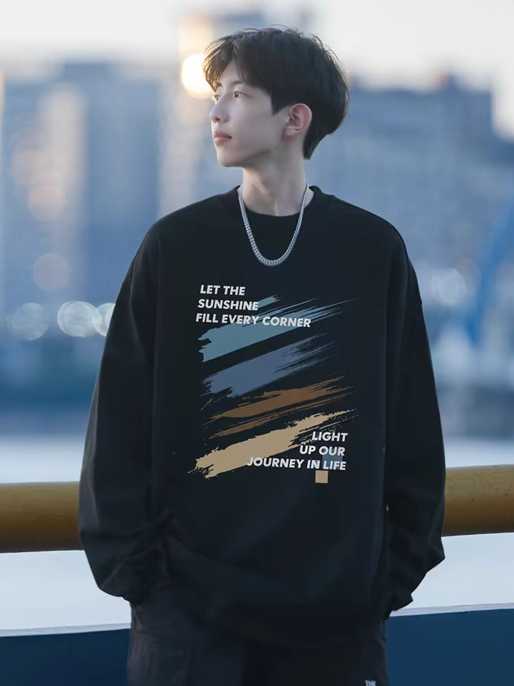 真维斯长袖t恤男士春秋季潮牌宽松印花休闲打底衫透气纯棉上衣服