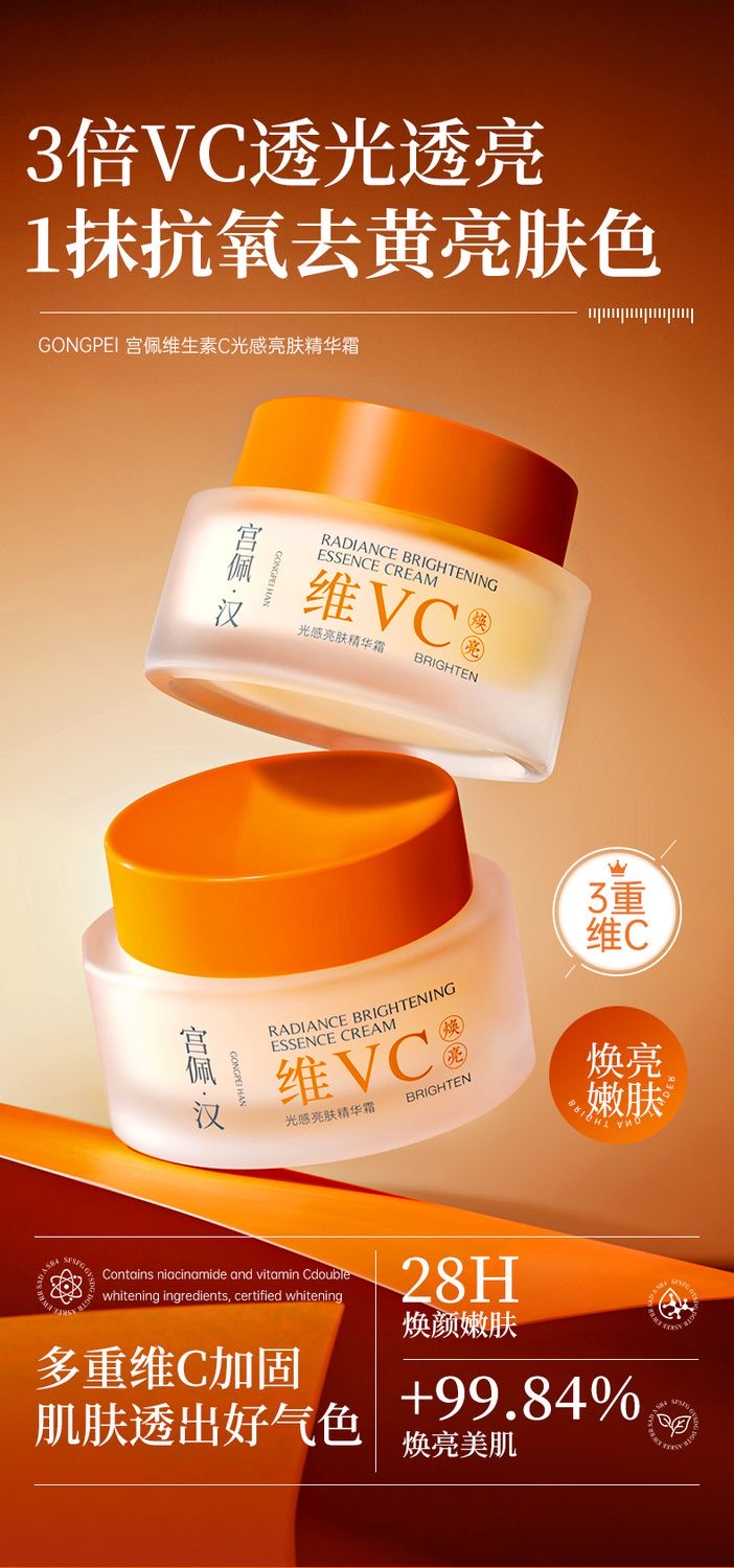 维生素C精华霜抗氧化熬夜去黄提亮肤色滋润补水保湿vc面霜学生党