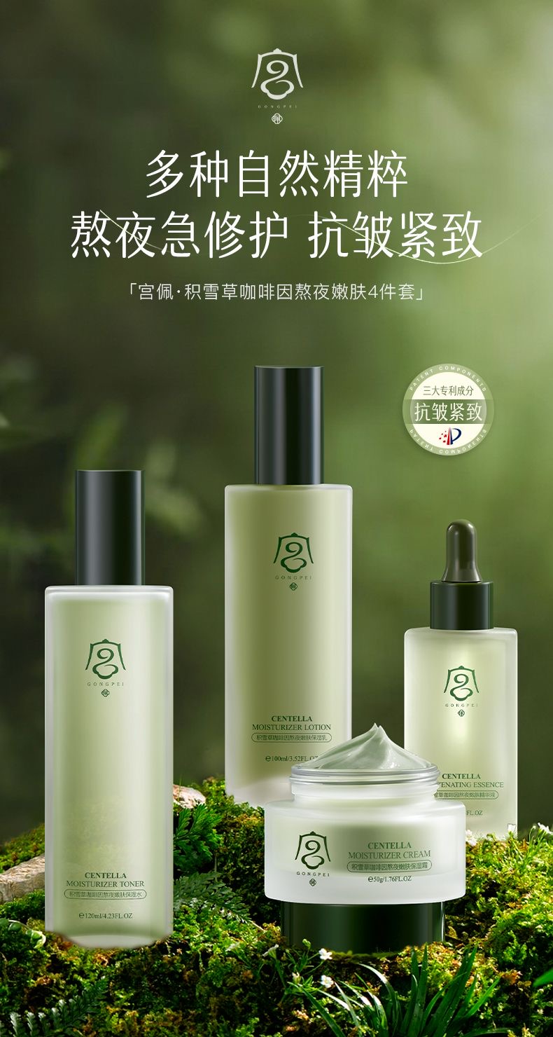 积雪草熬夜水乳保湿嫩肤减黄提亮抗皱紧致咖啡因乳液霜护肤品套装