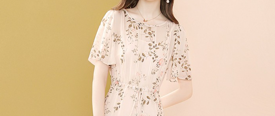 LEDE雪纺连衣裙女装夏装修身显瘦超仙气质中长款小个子碎花裙子夏天短袖衣服潮