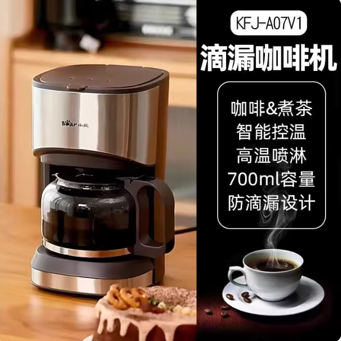 Bear/小熊 KFJ-A07V1滴漏式咖啡机家用小型迷你煮茶一体机