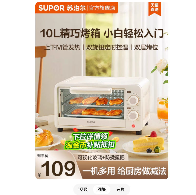 苏泊尔烤箱家用多功能一体2025新款小型10升迷你电烤箱烘焙专用