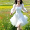 LEDE雪纺连衣裙女装夏装修身显瘦超仙气质中长款小个子碎花裙子夏天短袖衣服潮 S