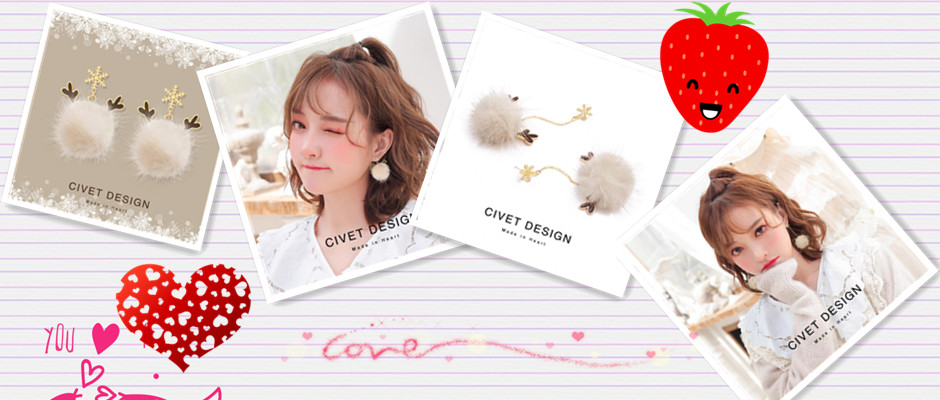 雪花少女毛毛球耳环