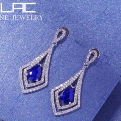 LAC高级珠宝天然蓝宝石耳饰18K金镶嵌钻石彩色宝石菱形耳坠
