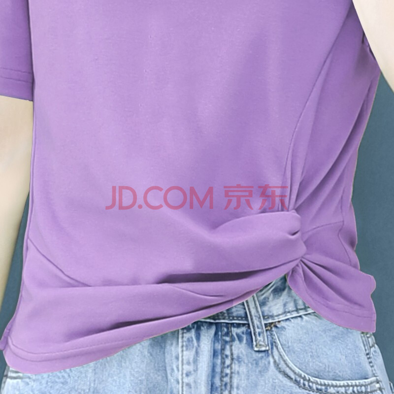 商品名称:吧吆吆短袖t恤女装洋气减龄2021夏季新款韩版设计感小众修身百搭打底衫体恤上衣 紫色 L