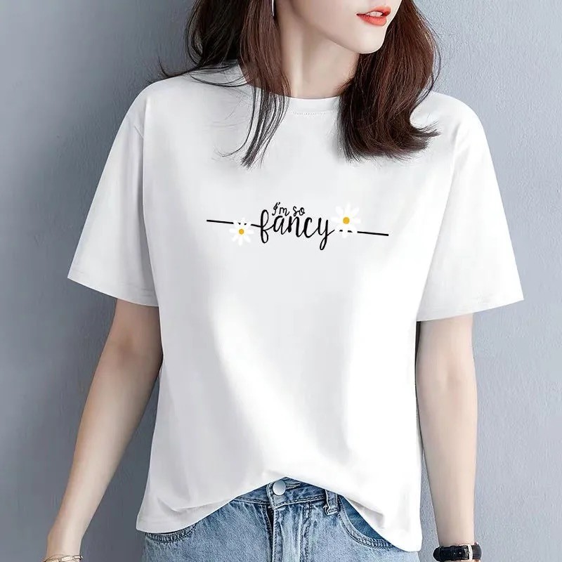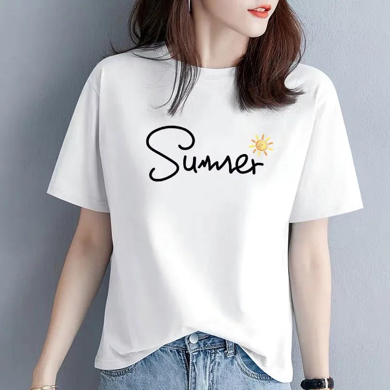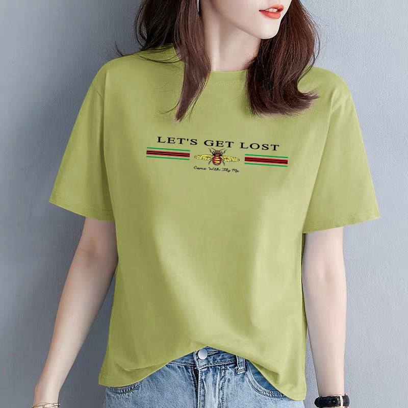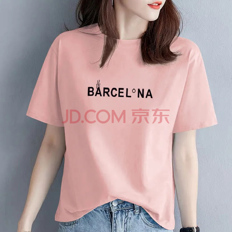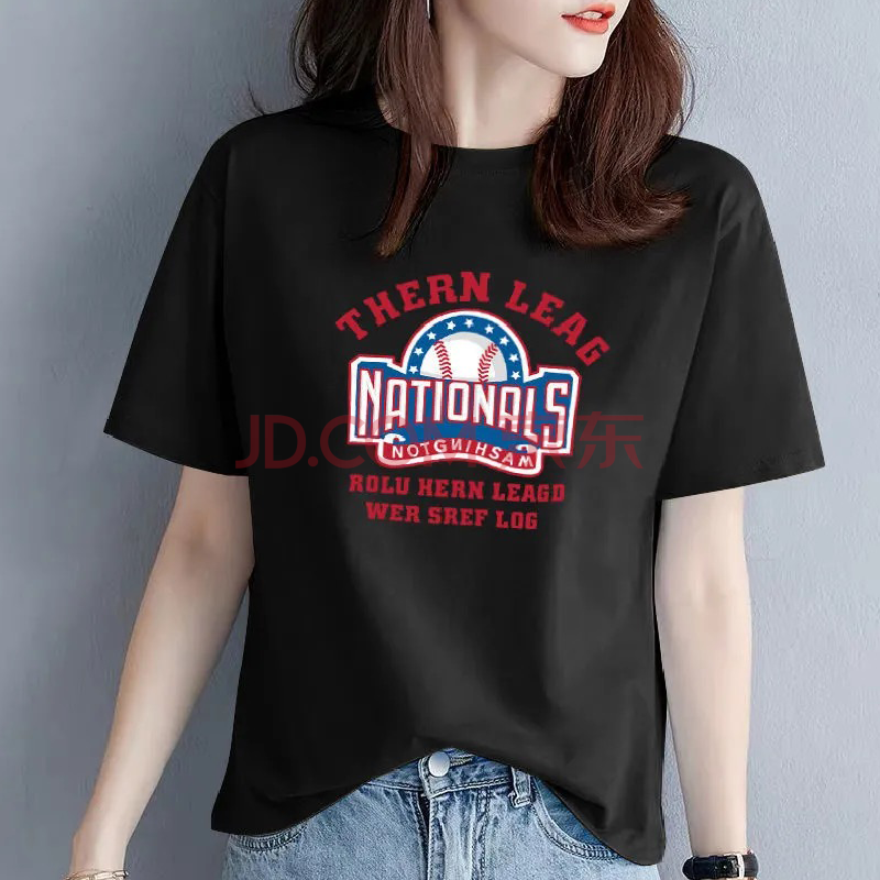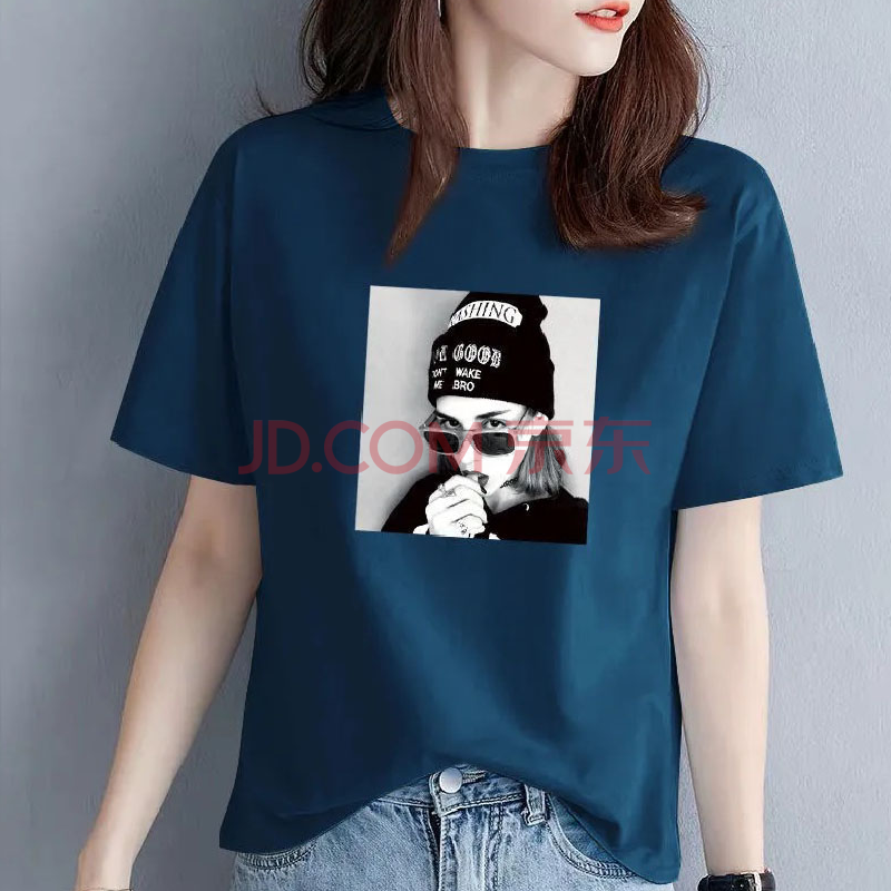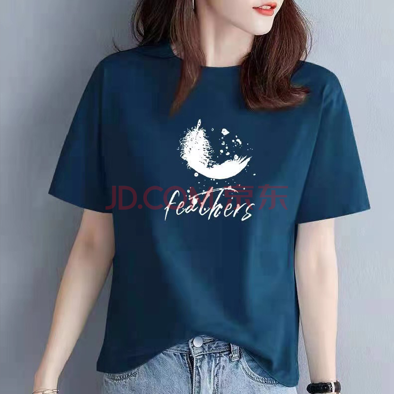 商品名称:欧洛黛t恤女短袖2021夏季新款时尚半截袖女装体恤衫字母简约纯棉女上衣 蓝色(黑条字母) L (建议110-120斤)