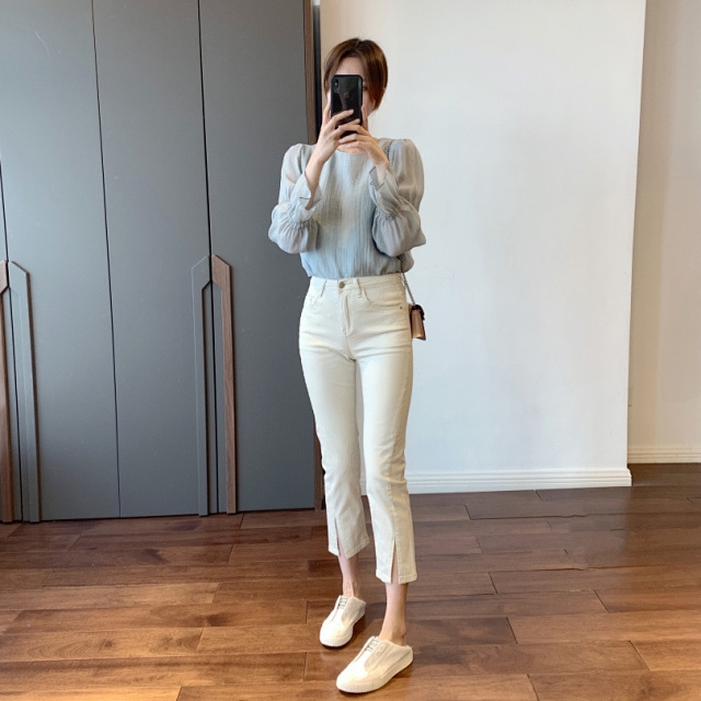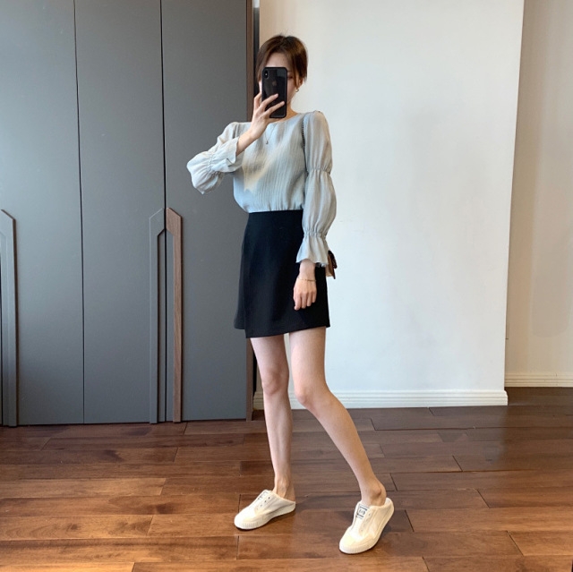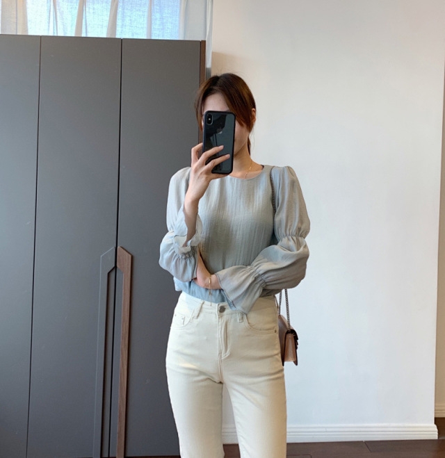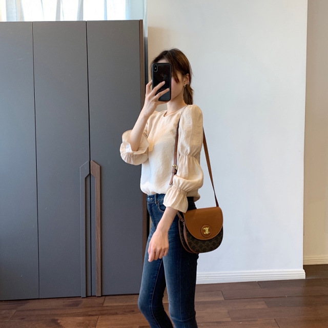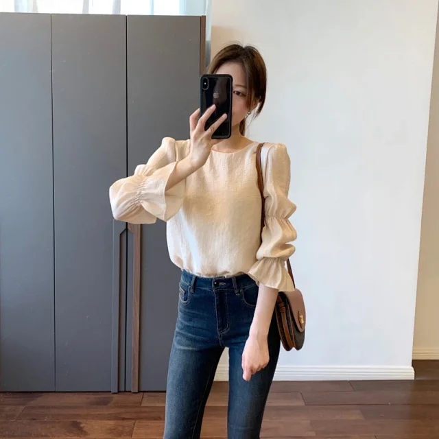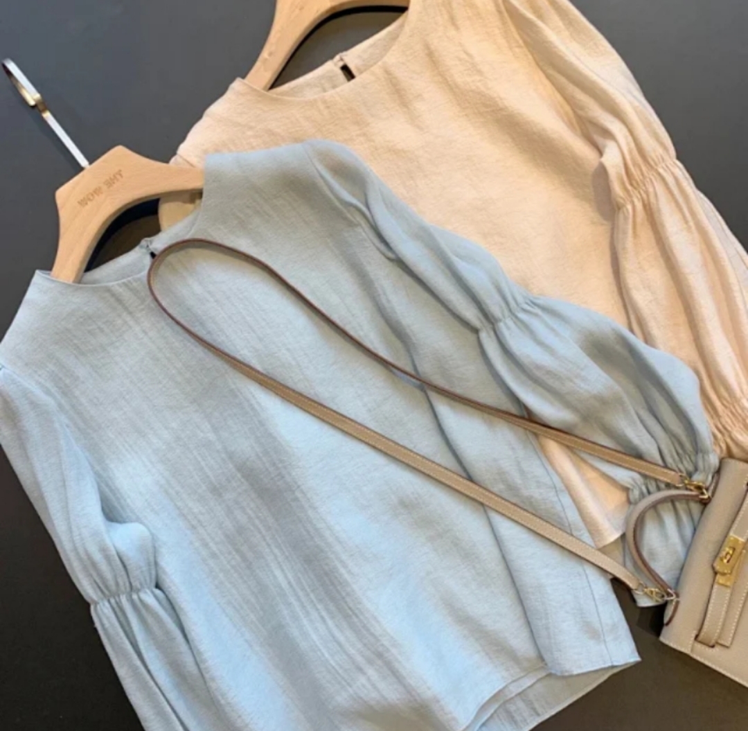 法式风情 泡泡袖空气感夏季衬衫 女士天丝圆领上衣