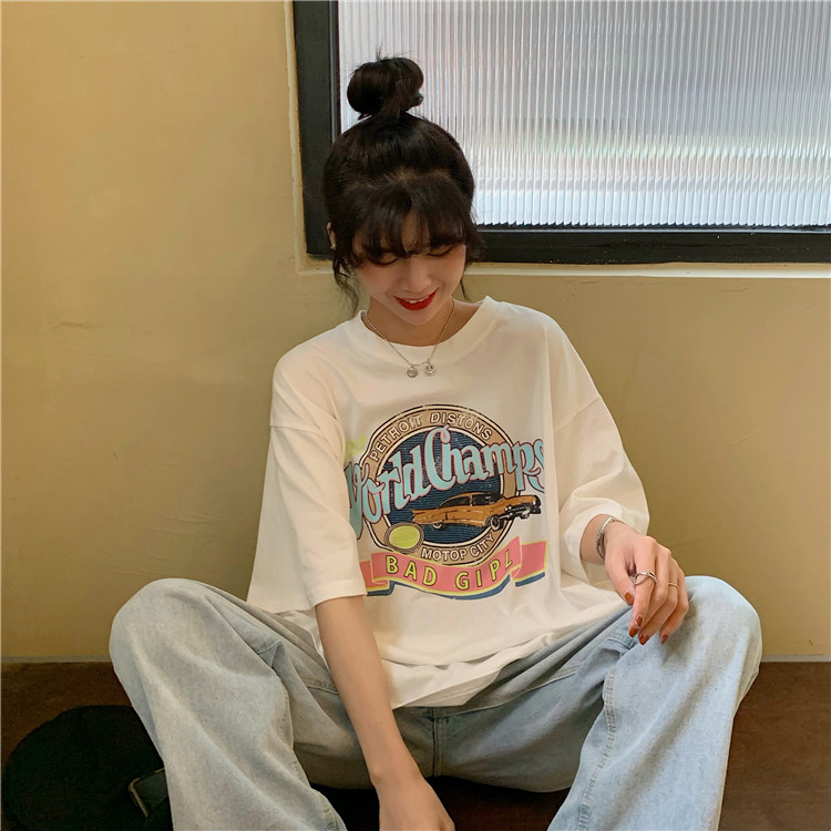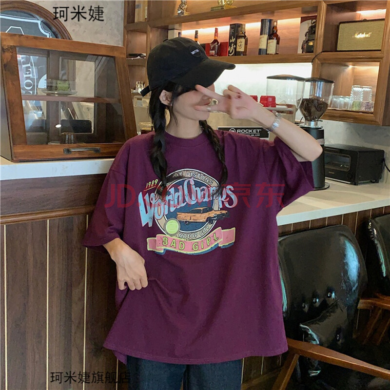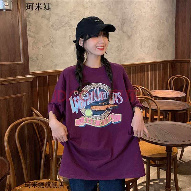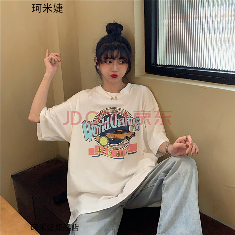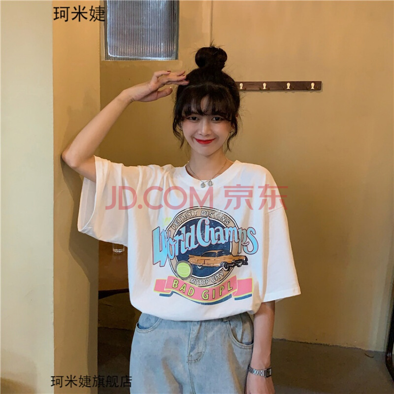 商品名称:珂米婕T恤女宽松韩版学生少女高中生初中生女生短袖衣服夏天原宿风丅恤衫夏季中学生复古港风潮流百搭上衣 白色 均码