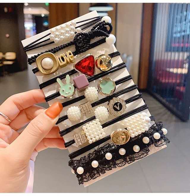 【品名】东大门森系皮筋发绳套装【规格】11件套【包装】网纱沙袋装【尺寸】直径约5.5cm
