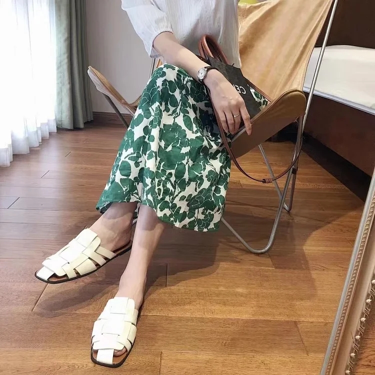 上脚好看!小CK超纤包头编织女拖鞋 方头平底沙滩外穿女鞋