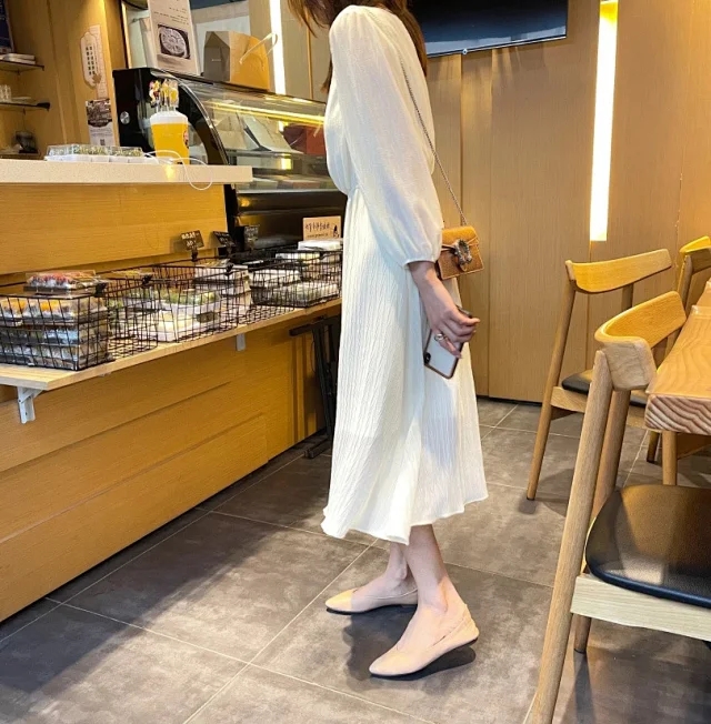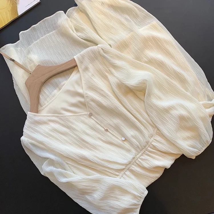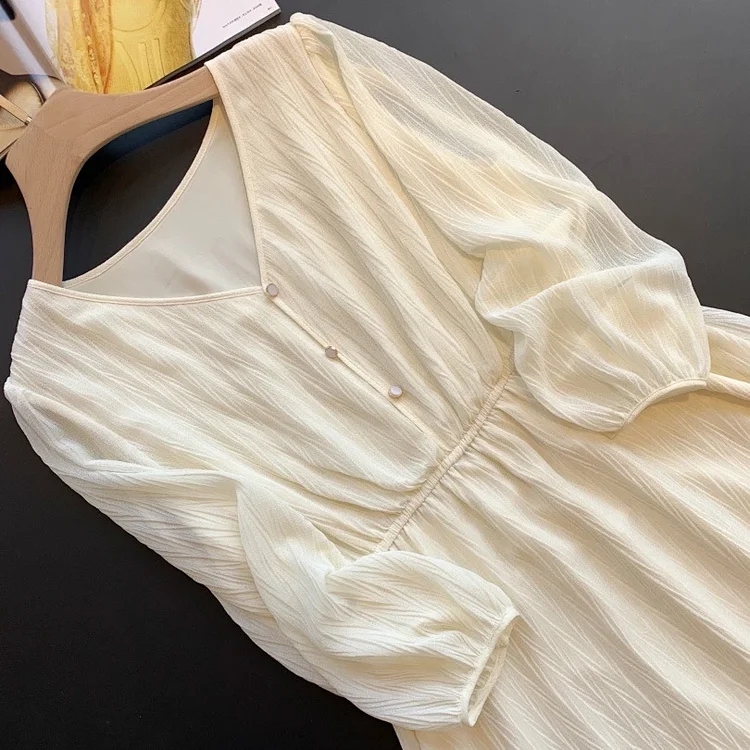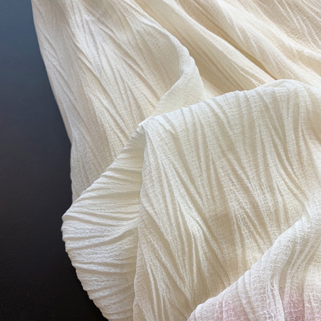 将一块平整的的面料压褶,然后就会出现这种立体的褶皱纹路 用料是普通用料的2倍左右,这件用料要3米多经过压褶的面料,会更加蓬松更仙了~