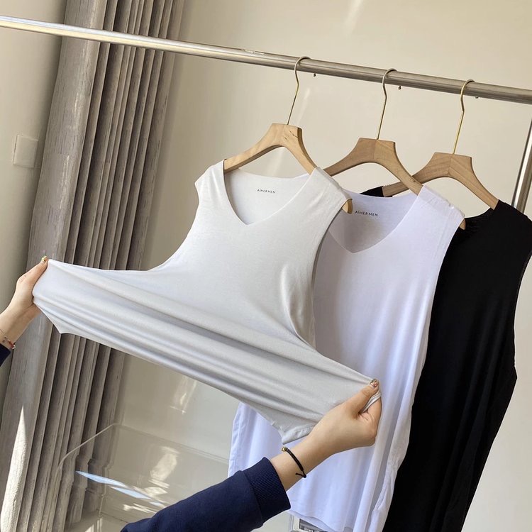 零感亲肤!清凉而轻盈的背心,无痕莫代尔面料,上身爽滑,不散边,不卷边~爱慕先生随心宽肩背心