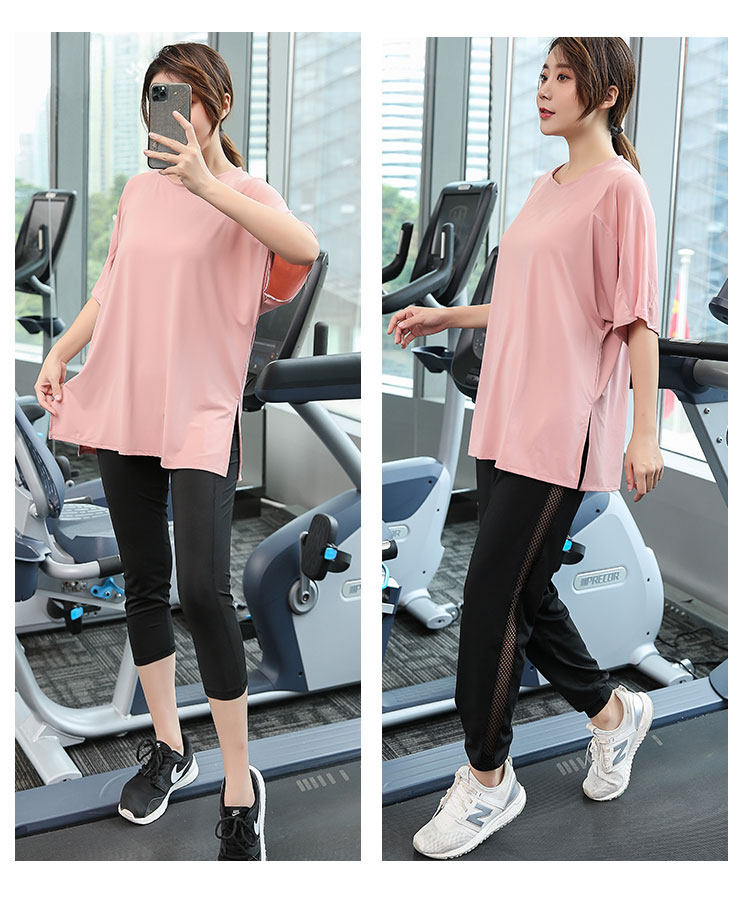 颜色分类: 【单上衣】黑色 【单上衣】粉色 【单上衣】紫色 【两件套】黑色短袖+ 【两件套】粉色短袖+ 【两件套】紫色短袖+ 【两件套】黑色短袖+修身长裤 【两件套】粉色短袖+修身长裤 【两件套】紫色短袖+修身长裤 【两件套】黑色短袖+宽松裤 【两件套】粉色短袖+宽松裤 【两件套】紫色短袖+宽松裤 【三件套】黑色短袖+文胸 + 【三件套】粉色短袖+文胸 + 【三件套】紫色短袖+文胸+ 【三件套】黑色短袖+文胸 【三件套】粉色短袖+文胸 【三件套】紫色短袖+文胸 【三件套】黑色短袖+文胸+宽 【三件套】粉色短袖+文胸+宽 【三件套】紫色短袖+文胸+宽